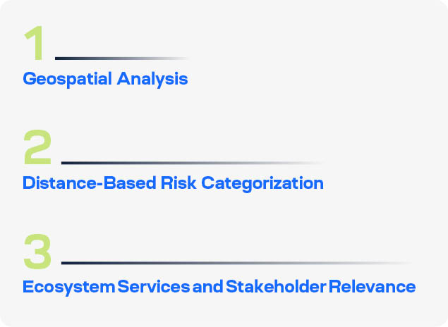We conducted a proximity-based biodiversity assessment. This approach involved the following steps: