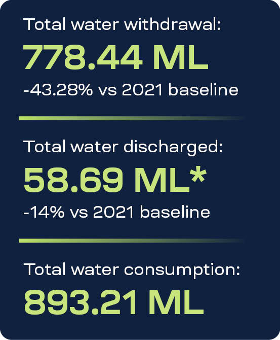 *Data based on estimates derived from the average change observed in previous years. This approach was necessary as we are currently in the process of improving our data estimation methodologies and installing water flow meters across relevant facilities. We expect to report more accurate and reliable discharge data in future reporting periods. This interim estimation method ensures continuity in reporting while maintaining transparency about current data limitations.
